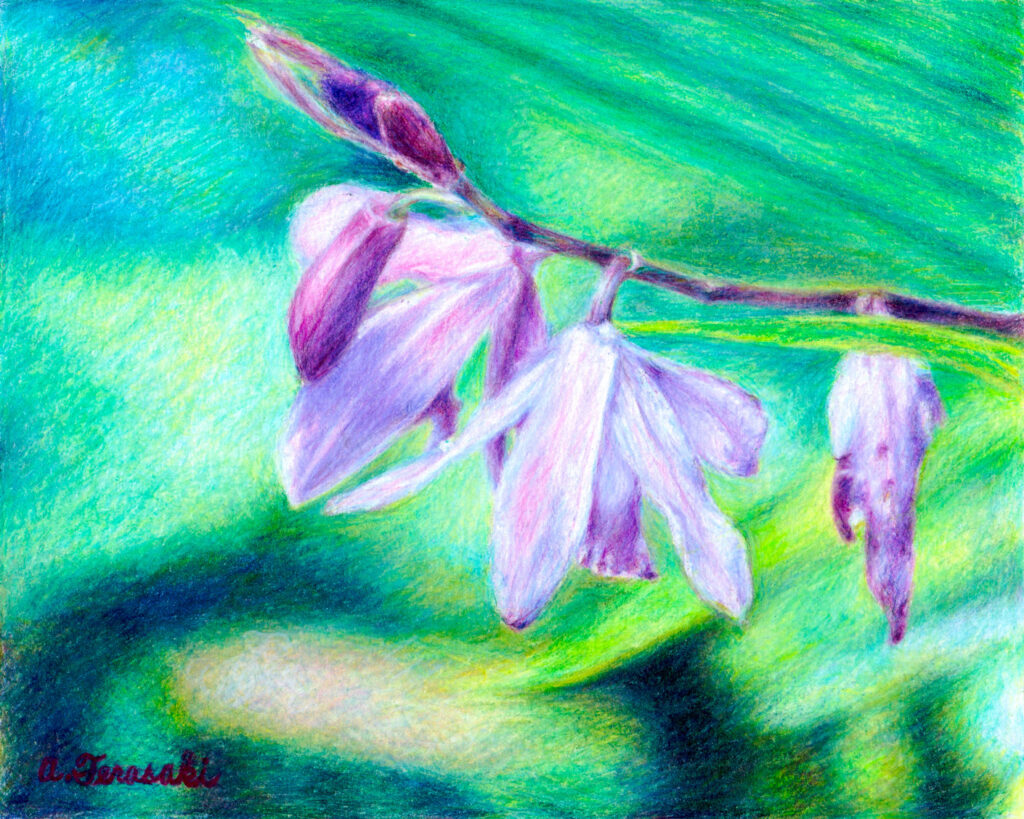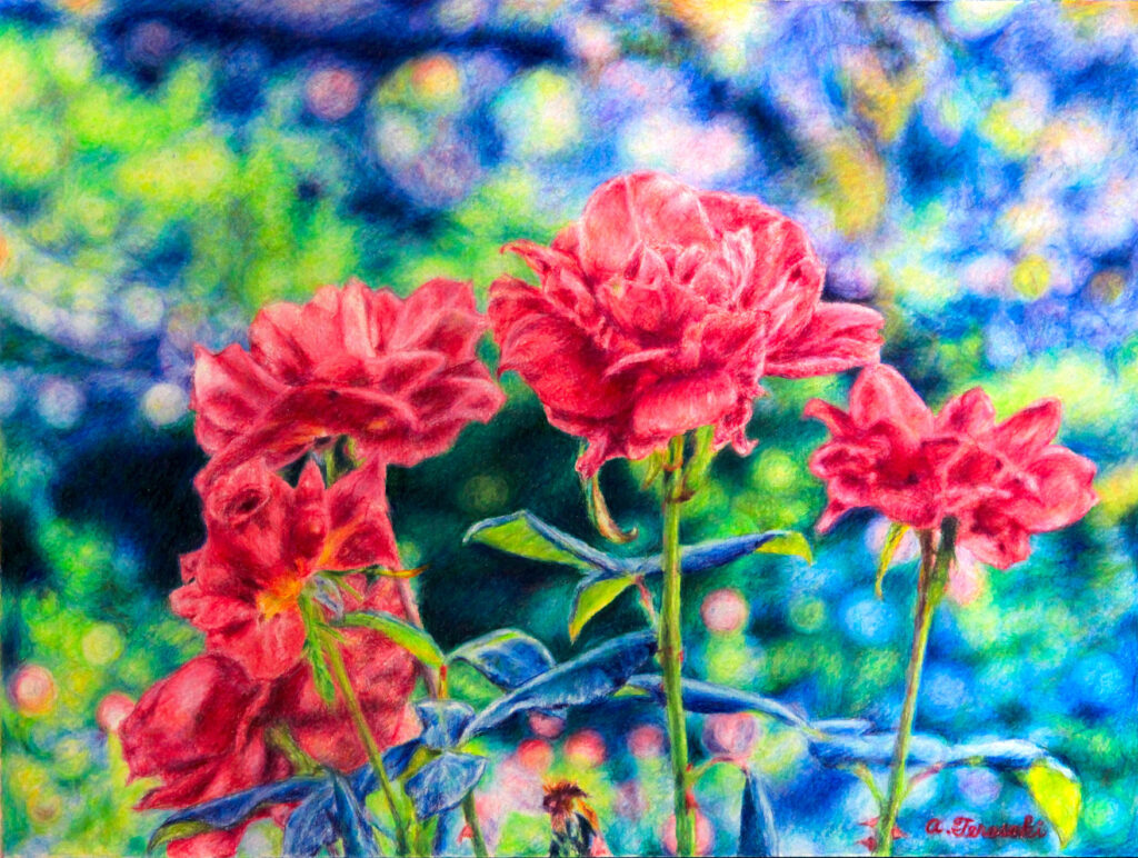 色鉛筆特有の柔らかで緻密な表現力に魅せられ、現在のスタイルに至りました。